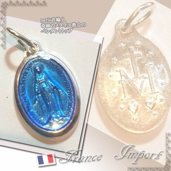 フランス パリ 直輸入 奇跡のメダイ ブルー系 バックシルバー色 チャーム ペンダントトップ medai2276